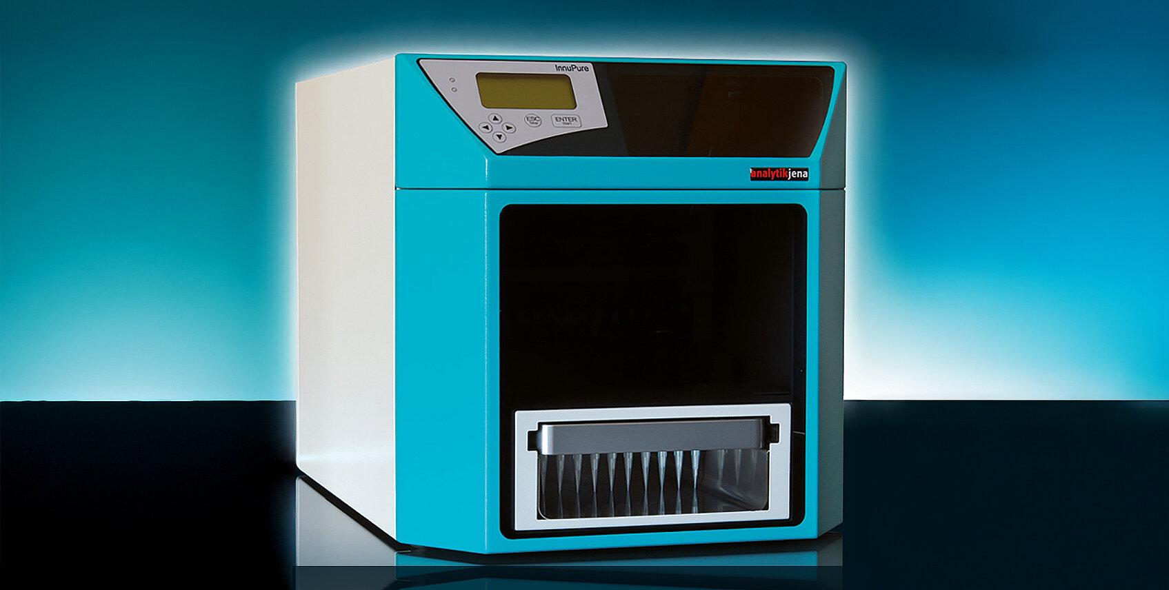 InnuPure C12 ist ein neues, flexibles und effizientes Extraktions-System für die vollautomatisierte Isolierung und Aufreinigung von Nukleinsäuren und Proteinen der AJ Cybertron, Berlin. Das in Deutschland entwickelte und produzierte System ist konzipiert für den kleinen und mittleren Probendurchsatz. Es kombiniert in bisher einmaliger Weise Liquid-Handling-Schritte mit einem extrem schnellen Walk-Away-Prinzip. Unterschiedlichste Ausgangsmaterialien können prozessiert werden.