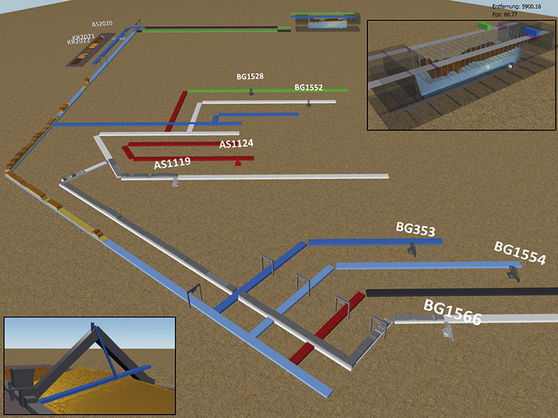 Diese 3D-Modelle liefern präzise Grundlagen für Massenberechnung, Bestandsverwaltung, Stationslinienerzeugung sowie die markscheiderische Betriebskontrolle (MBK).