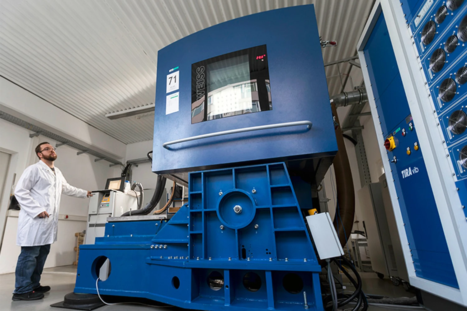 - Moderne Prüftechnik, z. B. Klimakammer, Vibrationsprüfstand, Hochspannungssysteme