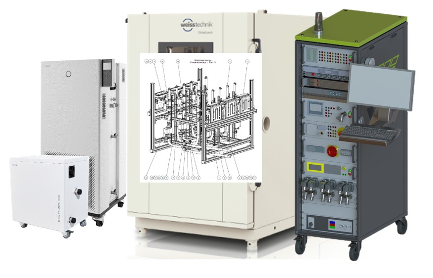 AUCOTEAM projektierte und realisierte einen modularen Prüfstand für bis zu sechs Prüflinge. Die Anlage stellt eine HV Versorgung bis 800 V DC mit 15 kW Leistung bereit und bindet die Heizgeräte über CAN bzw. LIN an. Eine wassergekühlte Konditionierung mit hoher Leistungsreserve regelt den Durchfluss zwischen 2 und 20 l/min und steuert die Mediumstemperatur von −40 °C bis +140 °C. Die Messarchitektur erfasst 16 Temperaturkanäle, Druckverlust, Leckageraten und elektrische Kenngrößen zeitsynchron. Soft und Hard Safety mit Isolationsüberwachung sichern den HV Betrieb ab. Die Umsetzung basiert auf dem AUCOTEAM Test Rack „Heart of Test“ mit standardisiertem GUI, automatisierter Sequenzsteuerung, Variantenmanagement und integrierter Berichtserstellung. So konnten wir Funktions , Umwelt und Lebensdauerprüfungen in einer gemeinsamen Testlogik konsistent abbilden.