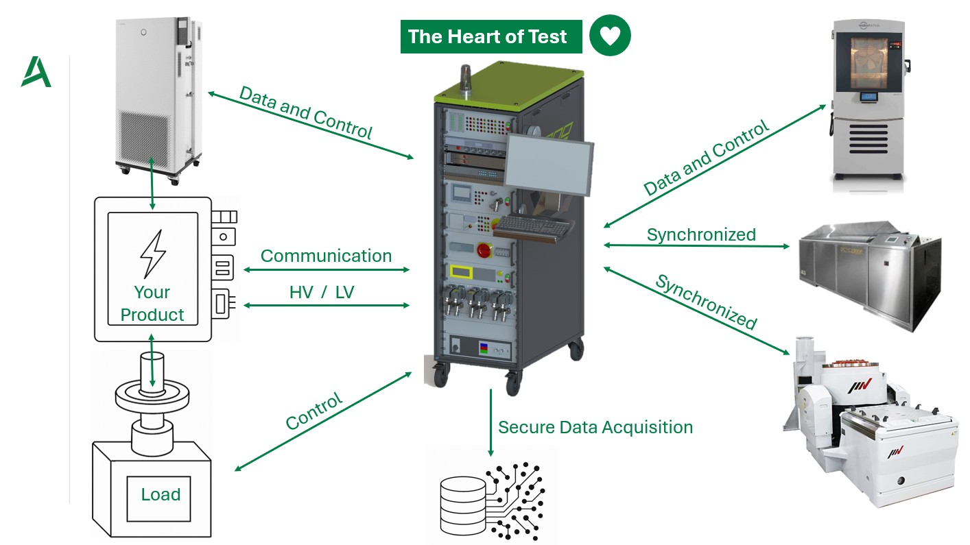 E-Mobilitätskomponenten werden elektrisch und funktional immer komplexer. Entwicklungsabteilungen müssen in kurzer Zeit sehr unterschiedliche Varianten unter Hochvoltbedingungen prüfen, Bus-Datenkommunikation sicher integrieren und reproduzierbare Umweltsimulationen fahren. Gleichzeitig steigen Anforderungen an Datensicherheit, Arbeitsschutz und normgerechte Dokumentation. Benötigt wird daher eine skalierbare Testinfrastruktur, die rasch einsatzbereit ist, unterschiedliche Prüflinge flexibel unterstützt und vorhandene Klima-, Schock- oder Vibrationsanlagen ohne Medienbrüche einbindet.
